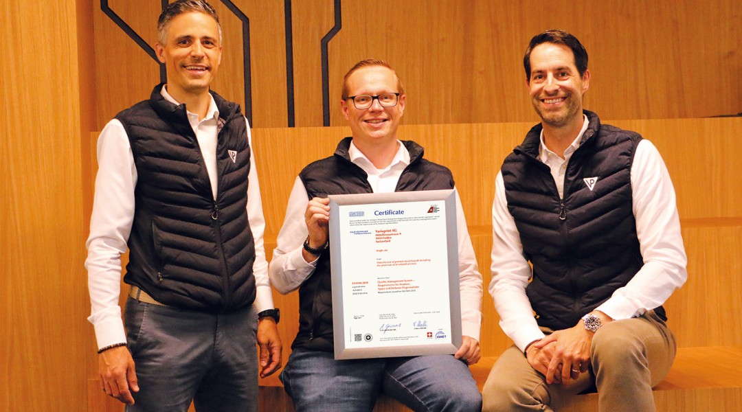 It is therefore a great pleasure to announce that we have now successfully achieved EN 9100 certification. EN 9100 is an internationally recognised standard in quality management and is specifically tailored to the requirements of the aviation, aerospace and defense industries. It is one of the most demanding, as it includes over 300 additional criteria compared to ISO 9001. This is further proof of Varioprint's commitment to excellence and uncompromising quality.